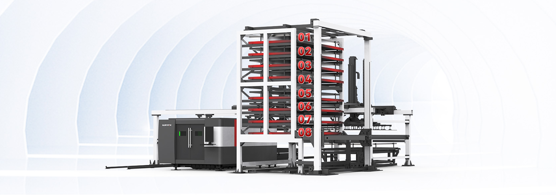 力星激光板材自動上下料庫系統-8層貨格 科學、緊湊的存儲方案